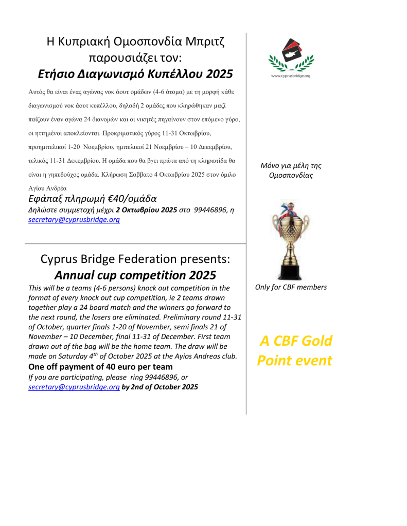 23 Σεπ Ετήσιος Διαγωνισμός Κυπέλλου 2025