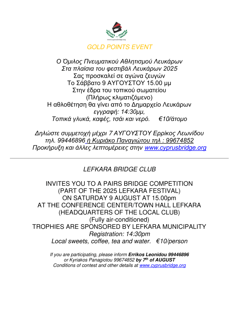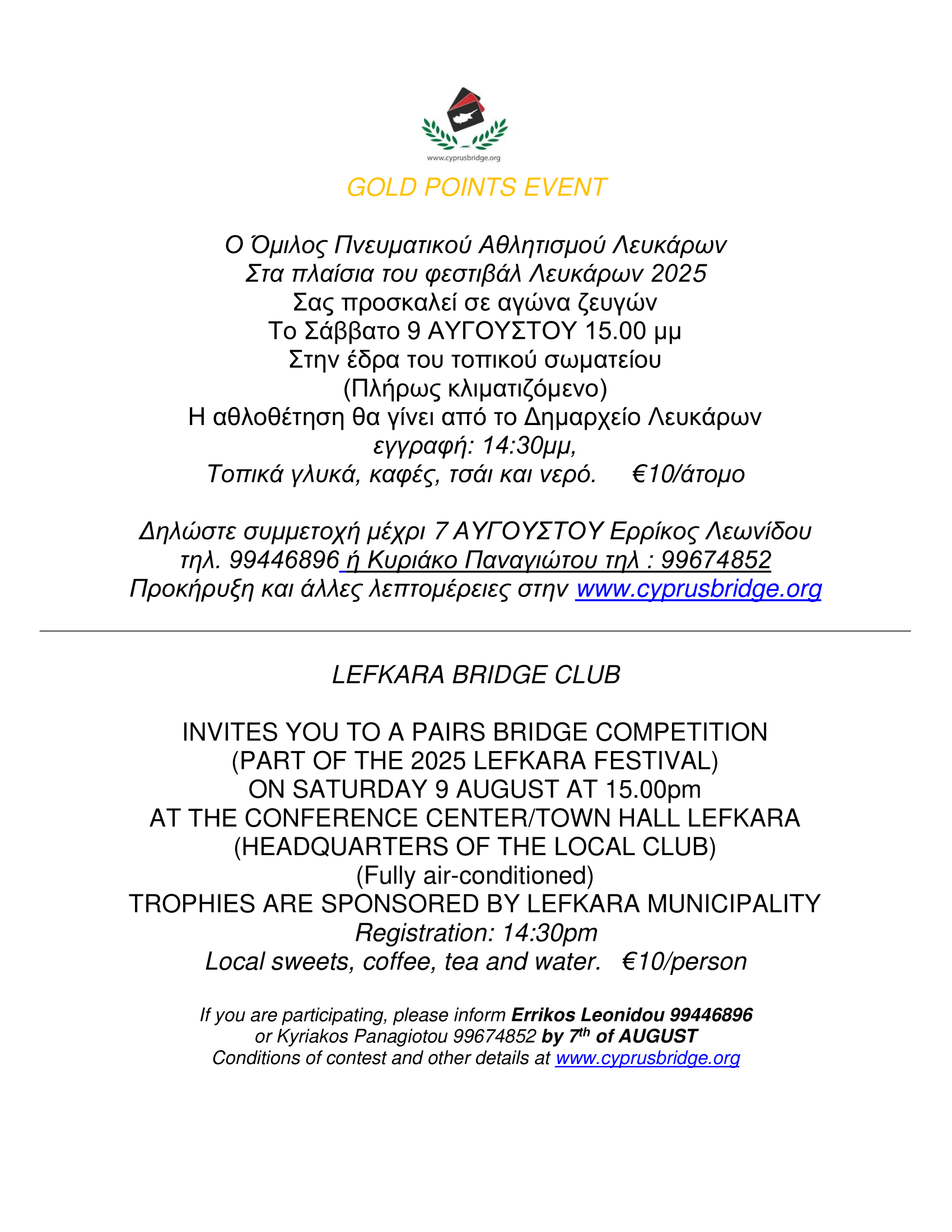 25 Jul GOLD POINTS EVENT – LEFKARA